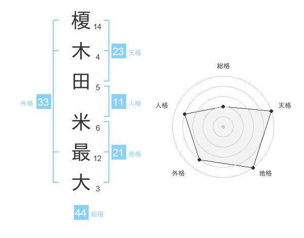 榎木田 米最大さんの総格は44画の2点!