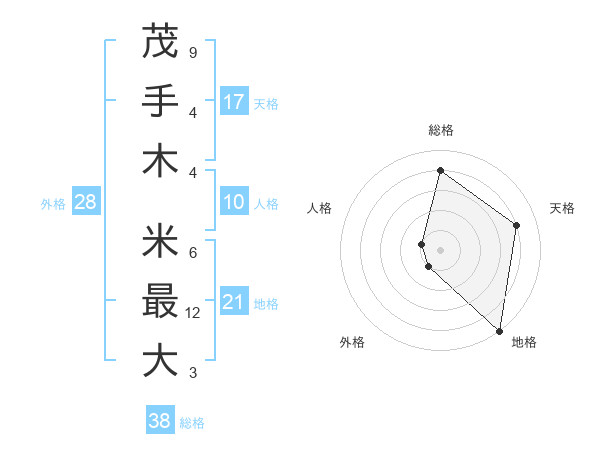 茂手木 米最大さんを姓名の画数から五運を鑑定