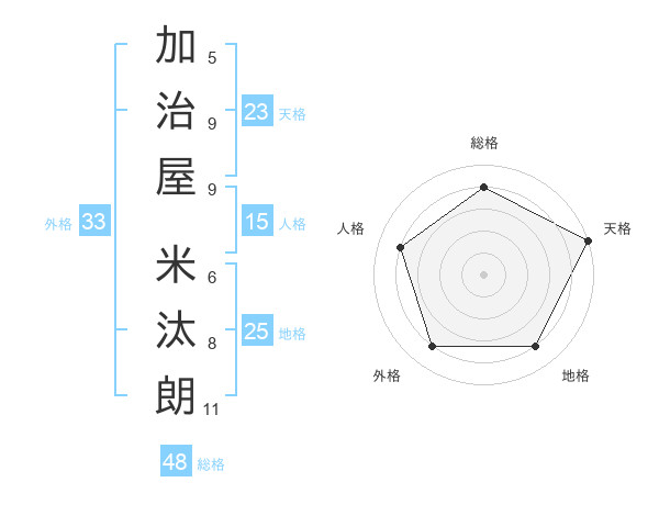 加治屋 米汰朗さんの天格は23画の5点!
