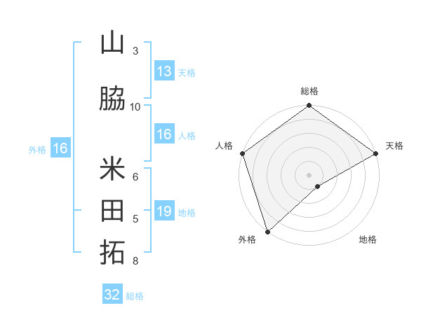 山脇 米田拓さんを姓名の画数から五運を鑑定