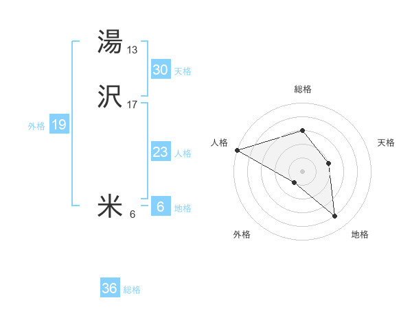 湯沢 米さんの総格は36画の3点!