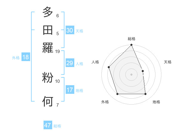 多田羅 粉何さんを姓名の画数から五運を鑑定