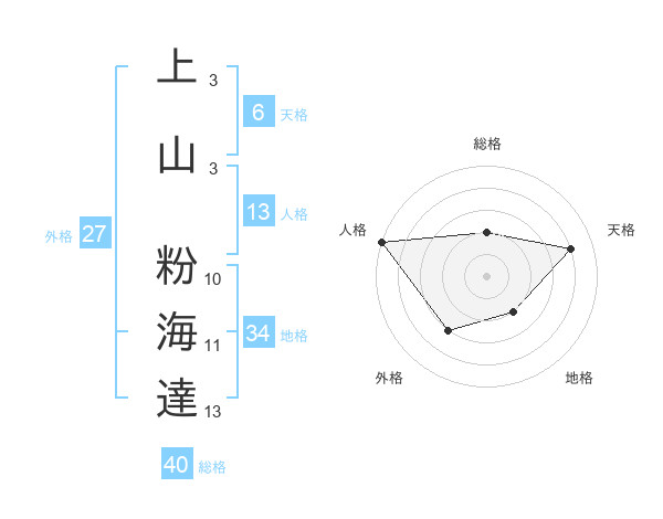 上山 粉海達さんの総格は40画の2点!