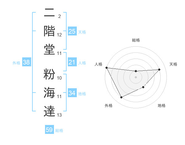 二階堂 粉海達さんを姓名の画数から五運を鑑定
