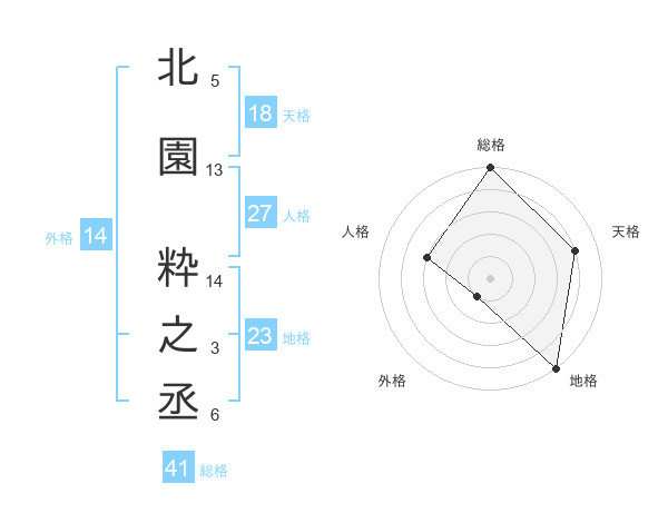 北園 粋之丞さんの総格は41画の5点!