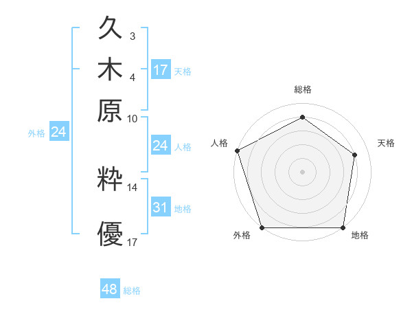 久木原 粋優さんを姓名の画数から五運を鑑定