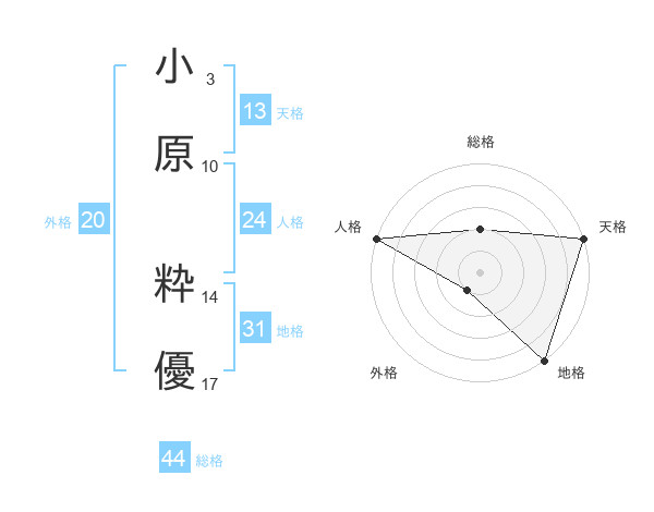 小原 粋優さんの総格は44画の2点!