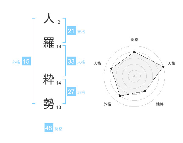 人羅 粋勢さんの総格は48画の4点!