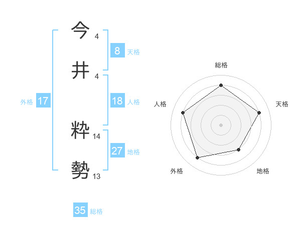 今井 粋勢さんを姓名の画数から五運を鑑定