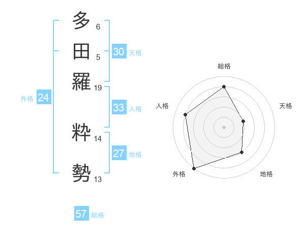 多田羅 粋勢さんを姓名の画数から五運を鑑定