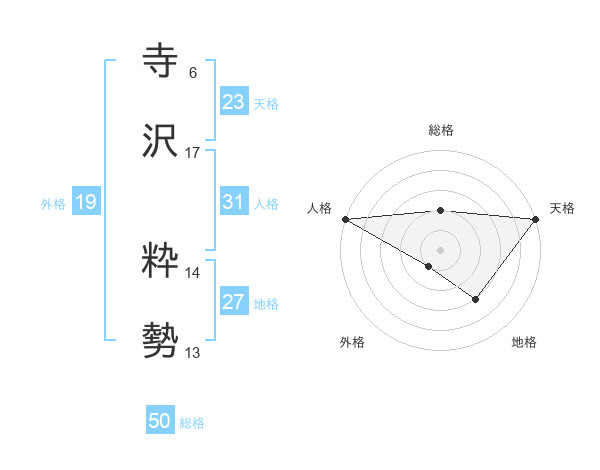 寺沢 粋勢さんの総格は50画の2点!