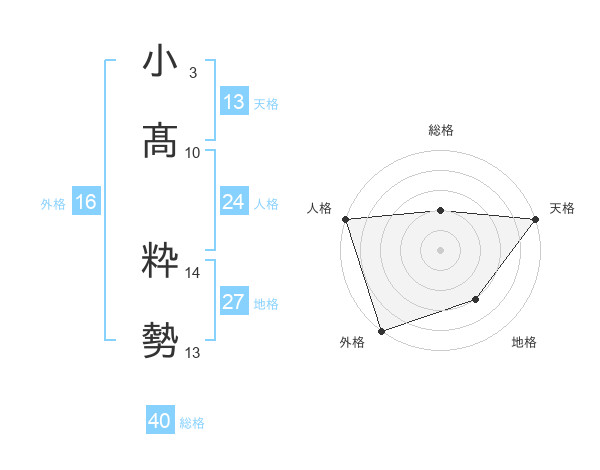 小髙 粋勢さんを姓名の画数から五運を鑑定