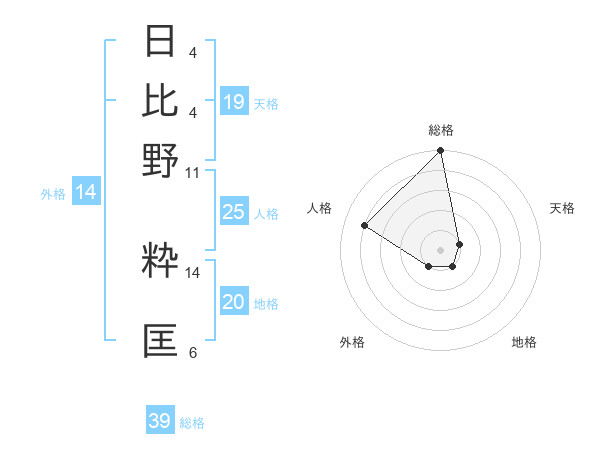 日比野 粋匡さんを姓名の画数から五運を鑑定
