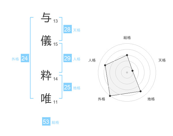 与儀 粋唯さんを姓名の画数から五運を鑑定