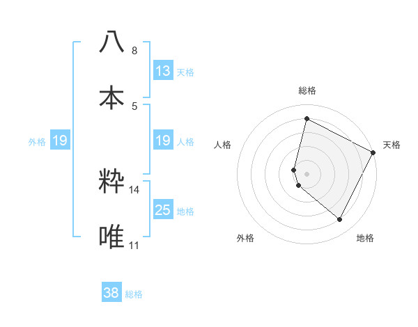 八本 粋唯さんの総格は38画の4点!