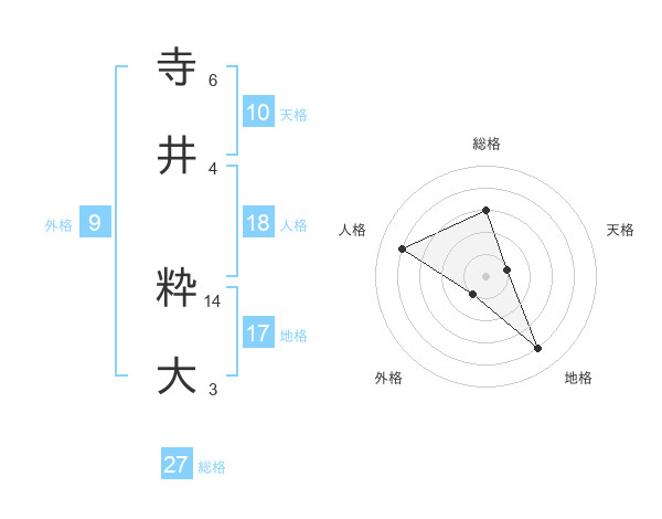 寺井 粋大さんを姓名の画数から五運を鑑定