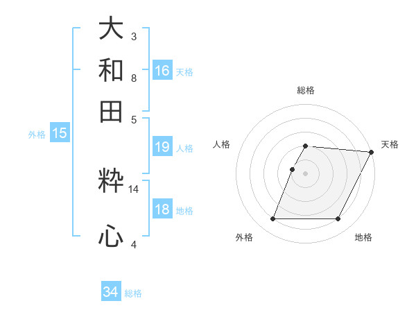 大和田 粋心さんを姓名の画数から五運を鑑定