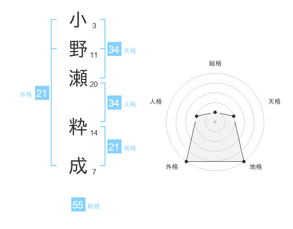 小野瀬 粋成さんの総格は55画の1点