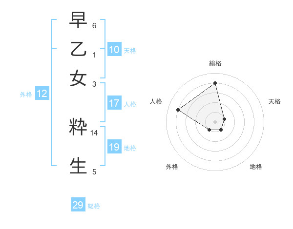 早乙女 粋生さんを姓名の画数から五運を鑑定