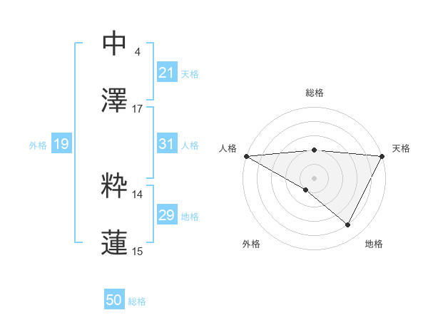 中澤 粋蓮さんを姓名の画数から五運を鑑定