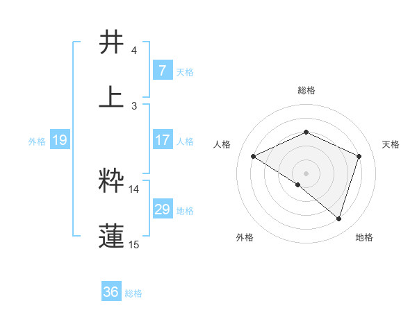 井上 粋蓮さんの天格は7画の4点!