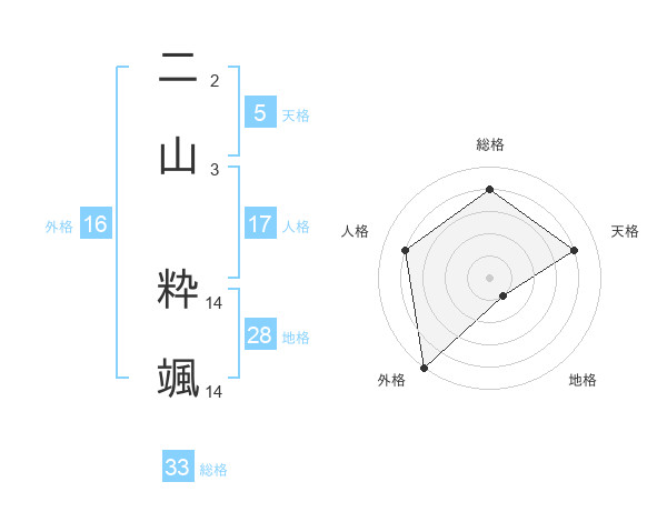 二山 粋颯さんを姓名の画数から五運を鑑定