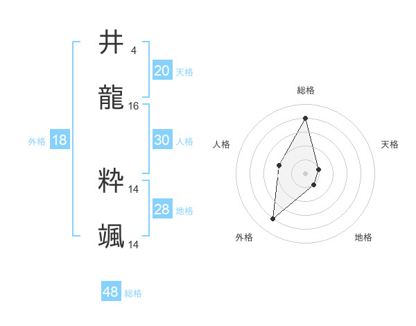 井龍 粋颯さんの総格は48画の4点!