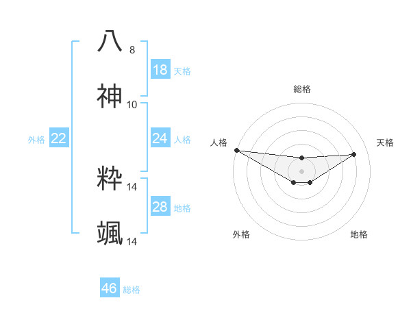 八神 粋颯さんの総格は46画の1点!