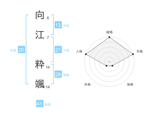 向江 粋颯さんの天格は13画の5点!