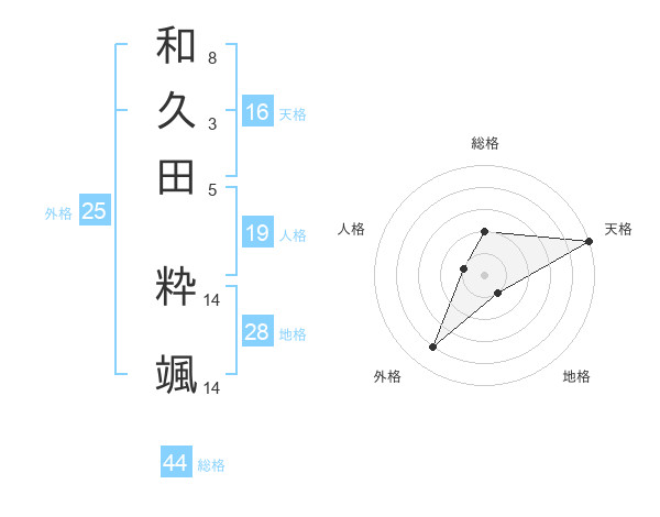 和久田 粋颯さんの天格は16画の5点!