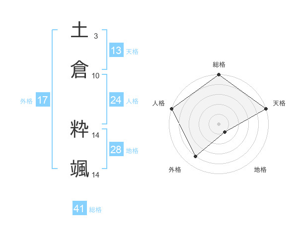 土倉 粋颯さんの総格は41画の5点!