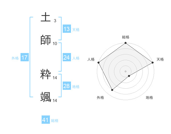 土師 粋颯さんを姓名の画数から五運を鑑定