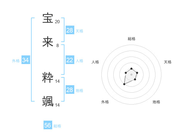 宝来 粋颯さんを姓名の画数から五運を鑑定