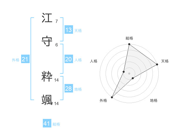 江守 粋颯さんの外格は21画の5点!