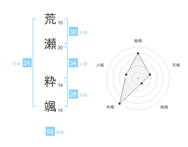 荒瀬 粋颯さんの総格は58画の4点!