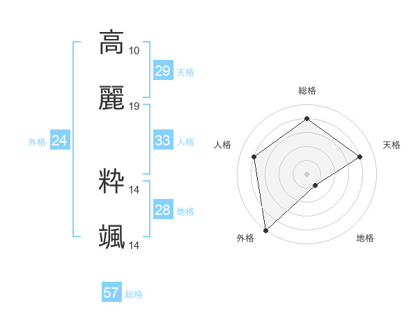 高麗 粋颯さんの総格は57画の4点!