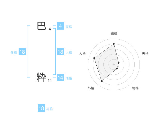 巴 粋さんの総格は18画の4点!