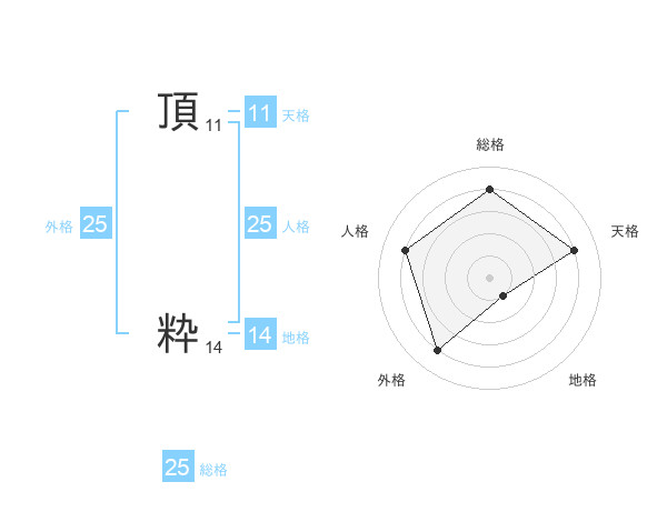 頂 粋さんの総格は25画の4点!