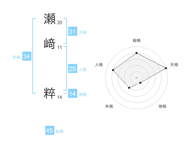 瀬﨑 粹さんを姓名の画数から五運を鑑定