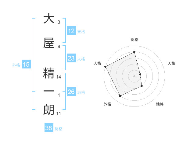 大屋 精一朗さんを姓名の画数から五運を鑑定