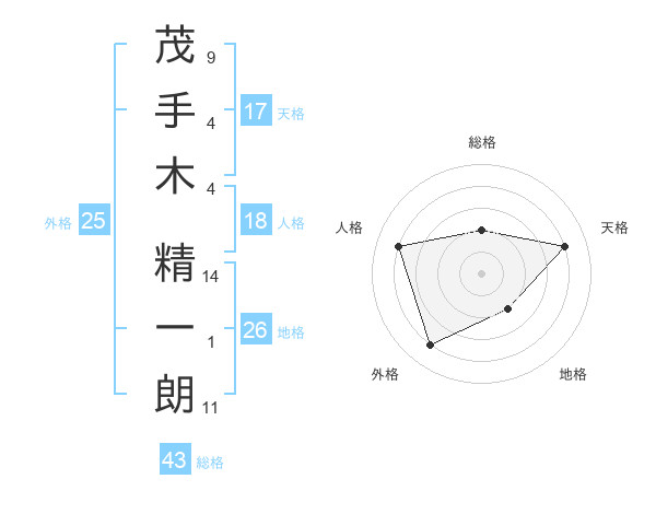 茂手木 精一朗さんの天格は17画の4点!