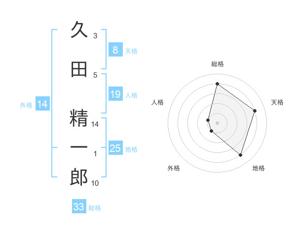 久田 精一郎さんの総格は33画の4点!
