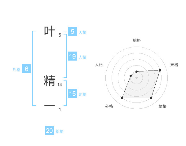 叶 精一さんの総格は20画の1点!