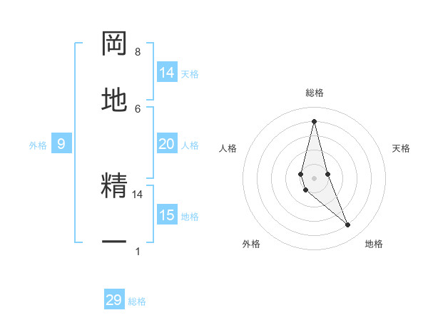 岡地 精一さんの総格は29画の4点!