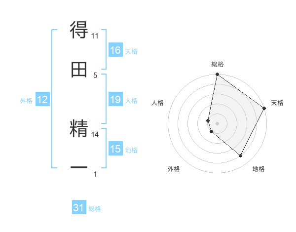 得田 精一さんの総格は31画の5点!