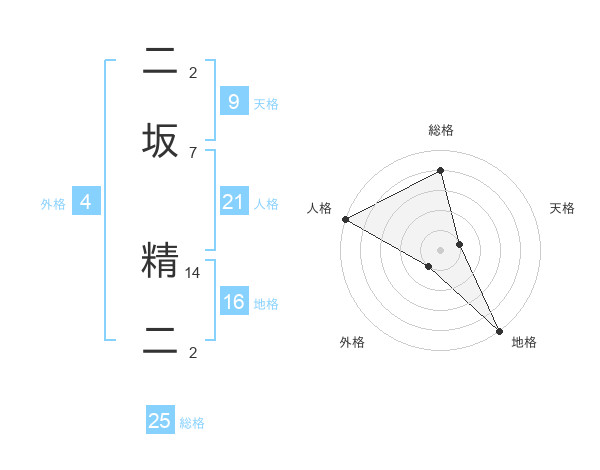 二坂 精二さんの総格は25画の4点!