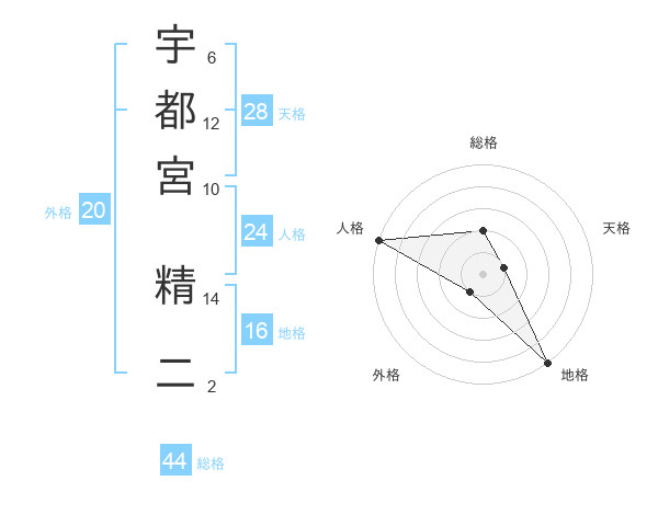 宇都宮 精二さんを姓名の画数から五運を鑑定