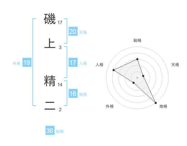 磯上 精二さんの天格は20画の1点!
