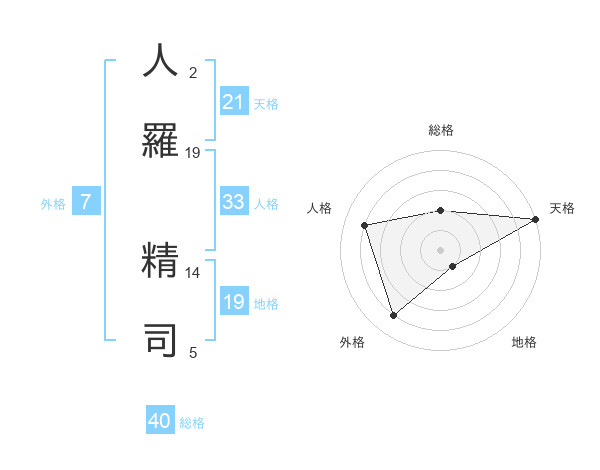 人羅 精司さんの天格は21画の5点!