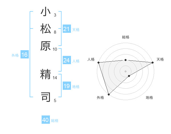 小松原 精司さんの天格は21画の5点!